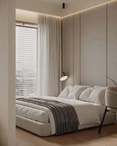 Anh chị nào yêu thích phong cách đơn giản nhưng tinh tế sẽ “mê” cách xử lý này: ít chi tiết cầu kỳ, tập trung vào trần – tường – ánh sáng và decor mềm mại.